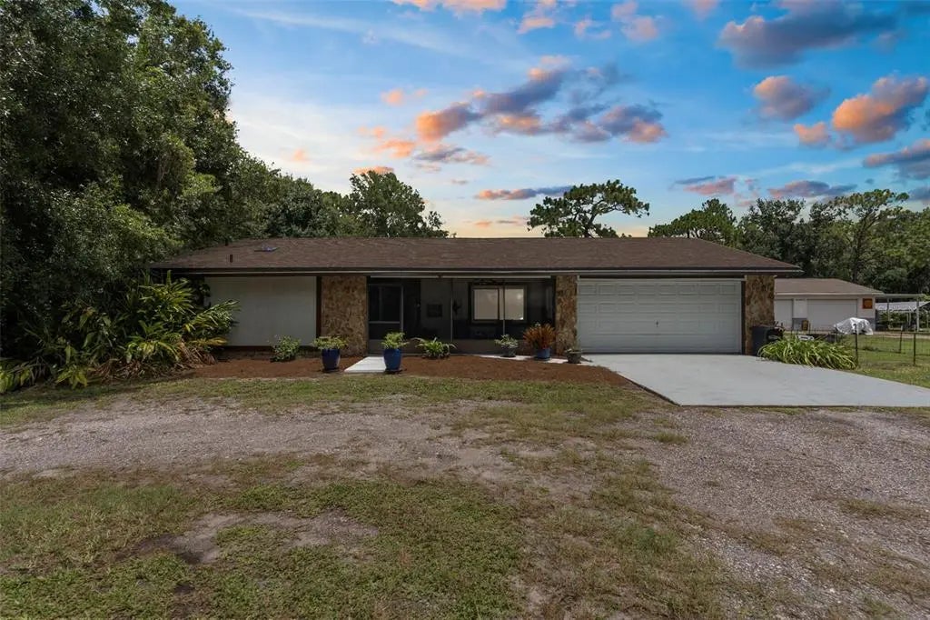 Stunning 5-Bedroom POOL Home on TWO ACRES– Move-In Ready with Dual Master Suites! Welcome to your private oasis on 2 beautifully landscaped acres, just minutes from the Veterans Expressway, Cheval, Heritage Harbor, Villa Rosa, shopping, dining, and outlet malls – yet tucked away in a quiet, peaceful neighborhood that feels like the country. NO HOA, NO CDD, NO FLOOD ZONE! This move-in ready estate home features 5 bedrooms, 2 bathrooms, and a flexible layout that can easily accommodate a 6th bedroom, in-law suite, or dual master setup. Step into a FRESHLY PAINTED interior through the screened-in front porch, the perfect spot to relax and enjoy the sounds of nature! As you enter, the home opens to a thoughtfully designed SPLIT FLOOR PLAN with recessed lighting throughout and abundant living space. The master suite wing is a retreat of its own—featuring a home office, private home gym with mirrored walls and lighting, spacious bedroom with sliding glass doors to the pool, dual closets, and a luxury bath with walk-in shower, extra-large garden tub, separate water closet, and a vessel bowl sink vanity with generous storage. Entertain in the OVERSIZED formal dining room with a storage closet, unwind in the EXPANSIVE living room, or enjoy a book in the parlor through elegant French doors. At the heart of the home is a chef’s dream kitchen featuring: Solid wood shaker cabinets with granite countertops, Movable island, Double oven AND 4-burner glass cooktop, AND an amazing stove with current set up as two burners and hot plate, however there are additional burners, steamer, deep fryer, and grill inserts to create a variety of options!! Pot filler plumbed over the cooktop and stove, Ceiling exhaust fans and 100 CFM vent fans above each range, New dishwasher, Under-cabinet lighting, Built-in microwave with convection and infrared cooking, Walk-in pantry, Pass-through window and door to pool area, and Extra kitchen A/C vent for added comfort! Two spacious guest bedrooms are large enough for king-size beds and feature walk-in closets. One bedroom has an en-suite bath with walk-in shower, vessel sink, and direct hall and pool access—great for guests or as a second master suite. The screen-enclosed POOL is your own private paradise with new RESURFACING(2021), NEW PUMP(2025), and a 6-foot depth. The hot tub boasts a NEW HEATER ELEMENT AND PUMP. Multiple access points include doors from the kitchen, pool bath, and master suite out to the pool. Additional features: ROOF (2021), NEW Windows Replaced (2021), AC (2008) serviced yearly, updated electrical panels, 3 storage sheds convey, Fully fenced backyard with separate dog run and multiple dog doors leading out, Washer/dryer (<1 year old) convey, 2.5-car garage with laundry area, Hot water heater timer system and WATER SOFTENER installed! The Furniture is available separately. Enjoy a beautifully maintained yard with towering pine and oak trees, landscaped bases, and regular visits from local deer in the mornings and afternoons. This is the RARE property that offers comfort, functionality, and flexibility—great for multi-generational living, entertaining, or just enjoying the peaceful surroundings. Ideally situated between Lutz Lake Fern Road and SR-54, with quick access to the Veteran’s Expressway, shopping, and dining, this property offers the best of both worlds. THere is a walk through video attached, click virtual tour button.